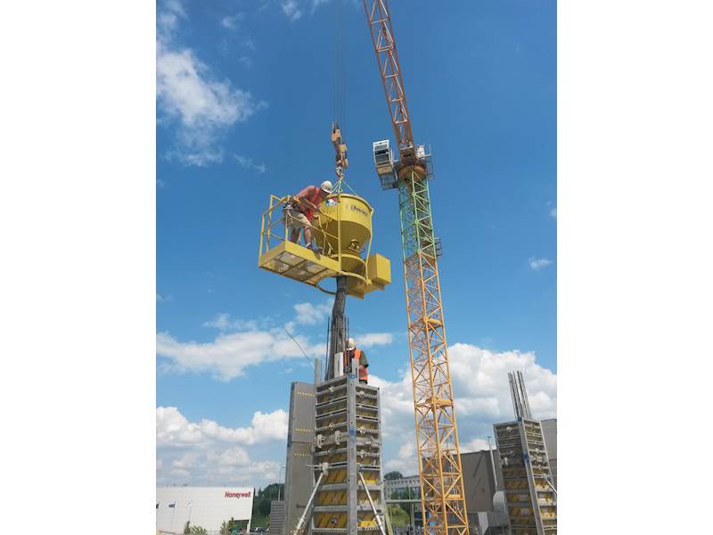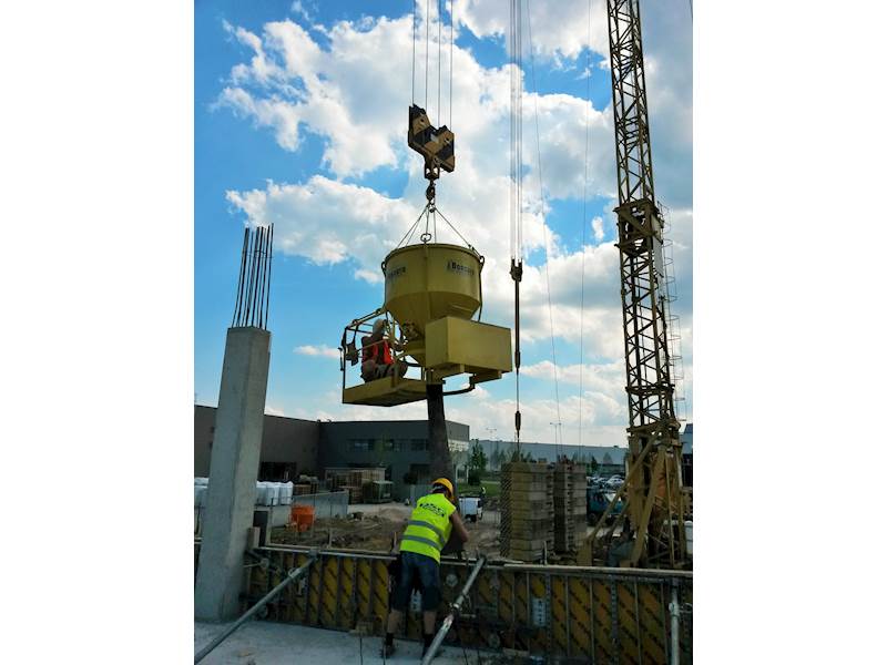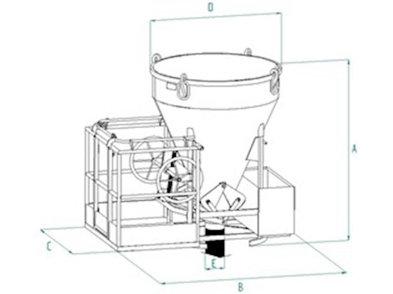 Bádie na beton s plošinou, model CT-P s obslužnou plošinou a rukávem.Typově vychází bádie typu CT. Součástí je bezpečnostní plošina pro obsluhu. Ideální provedení pro betonování v nepřístupných místech, kde obsluha ze země není možná. Zcela bezpečné. Bádie je vybavena pružinovým uzávěrem, který zaručuje plynulé otevření a uzavření výpusti. Součástí je rukáv z prošívané pryže 2 m dlouhý.