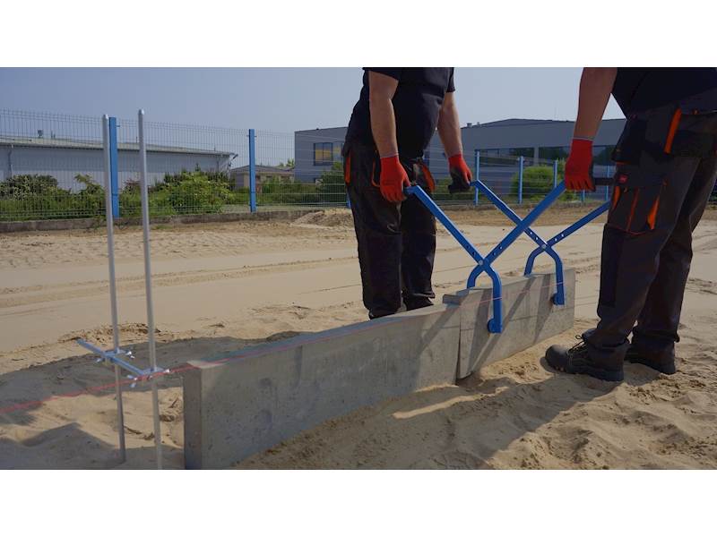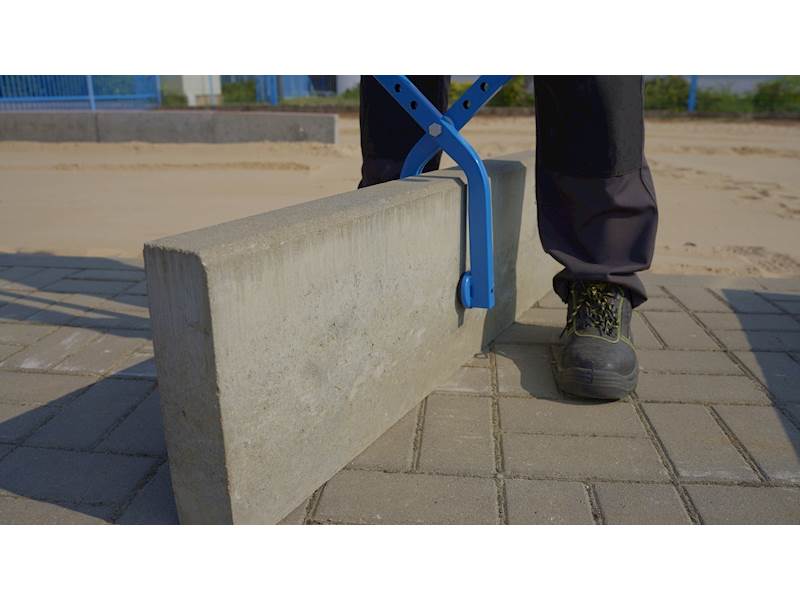 Kleště pro manipulaci se ztraceným bedněním, obrubníky, deskami apod. zatravňováky. Velmi jednoduchá manipulace zaručuje 100% využití. Jednoduché nastavení. Dvojbodový úchop s pryžopvými terči. (vyměnitelné).