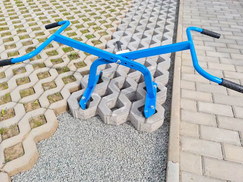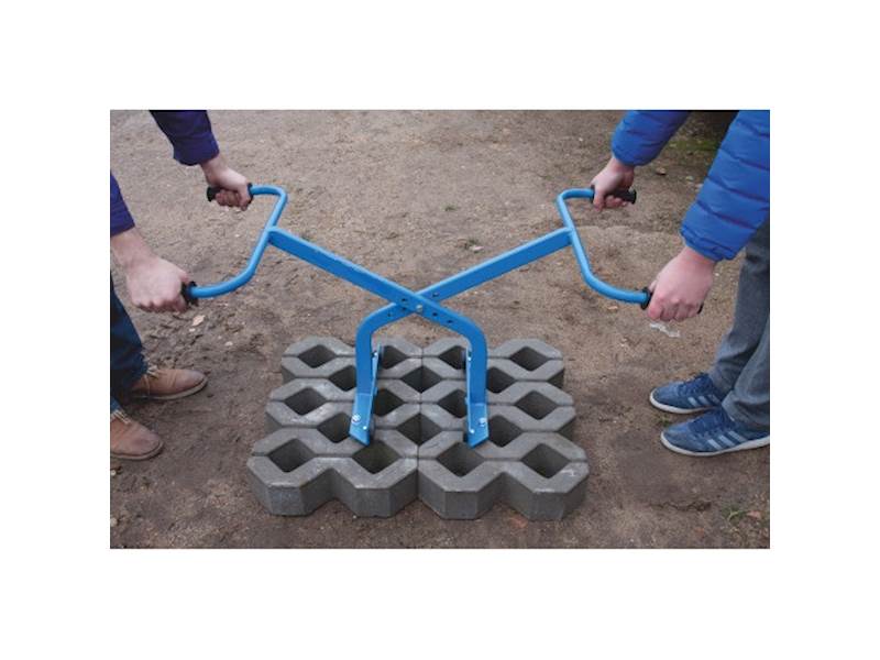 Kleště pro manipulaci se zatravňováky. Zároveň lze použít i pro obrubníky, desky, betonovými bloky, cihlami, apod Velmi jednoduchá manipulace zaručuje 100% využití. Jednoduché nastavení.