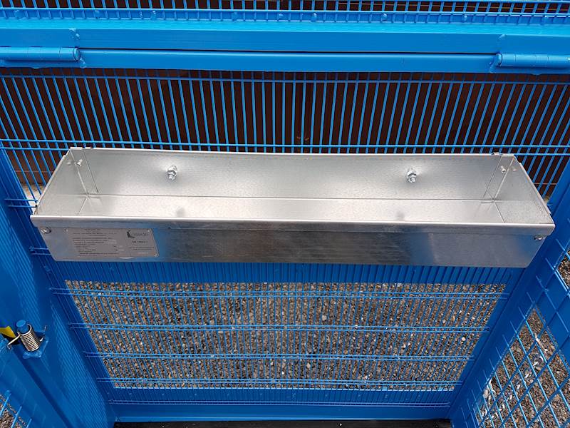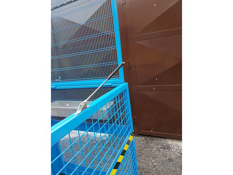 Sklápěcí víko se vzduchovým hydraulickým válcem, pro snadné otevření i sklopení. Po sklopení lze klec použít i jako uzamykatelnou klec (zámek není součástí dodávky)